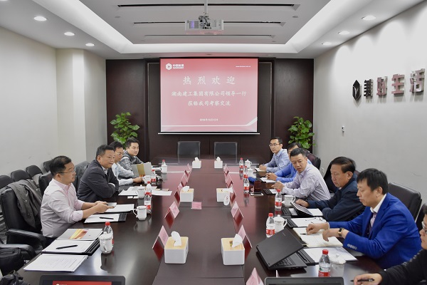 10月12日,湖南建工集團黨委委員、副總經理陳浩、湖南建工環(huán)保有限公司董事長徐劍等一行蒞臨中國能源工程集團總部進行交流考察,中國能源工程集團總裁段玉林、總裁助理張向東、所屬企業(yè)中能源(天津)環(huán)境科技有限公司執(zhí)行董事李西平、總經理包宗義等出席了相關會議。