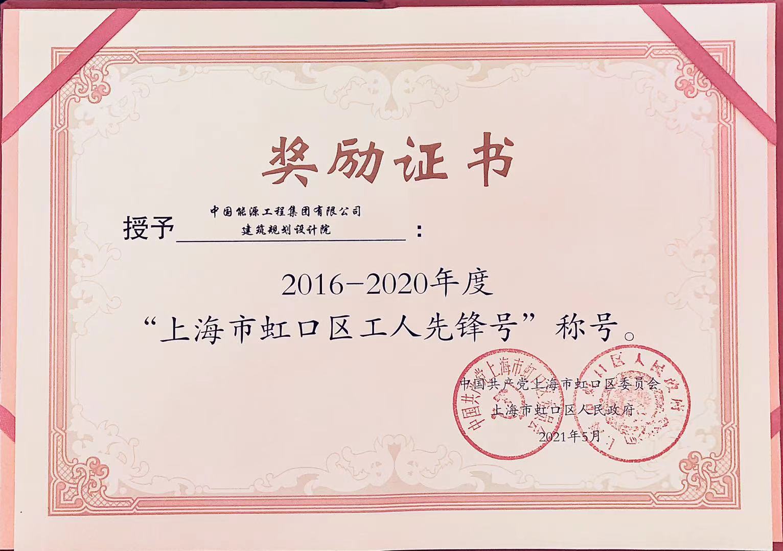 【喜訊】中國(guó)能源工程集團(tuán)建筑規(guī)劃設(shè)計(jì)院榮獲“上海市虹口區(qū)工人先鋒號(hào)”榮譽(yù)稱號(hào)