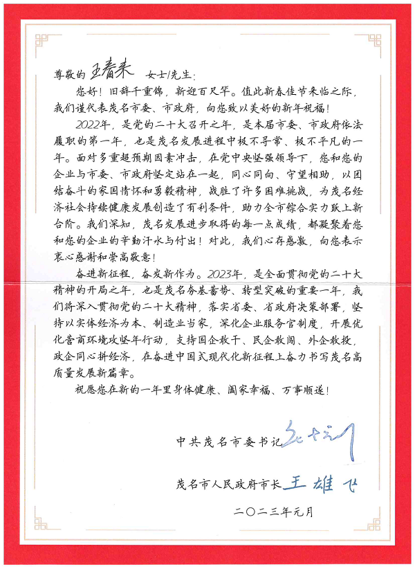 • 1月19日,中國(guó)能源工程集團(tuán)有限公司(以下簡(jiǎn)稱“中國(guó)能源工程集團(tuán)”)所屬中機(jī)科技發(fā)展(茂名)有限公司(以下簡(jiǎn)稱“中機(jī)茂名”),收到茂名市生態(tài)環(huán)境局代表茂名市人民政府送出的感謝信,對(duì)公司為茂名經(jīng)濟(jì)社會(huì)持續(xù)健康發(fā)展做出的貢獻(xiàn)表示感謝。
