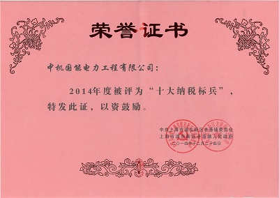 中機(jī)電力獲評(píng)“浦東新區(qū)老港鎮(zhèn)納稅標(biāo)兵企業(yè)”