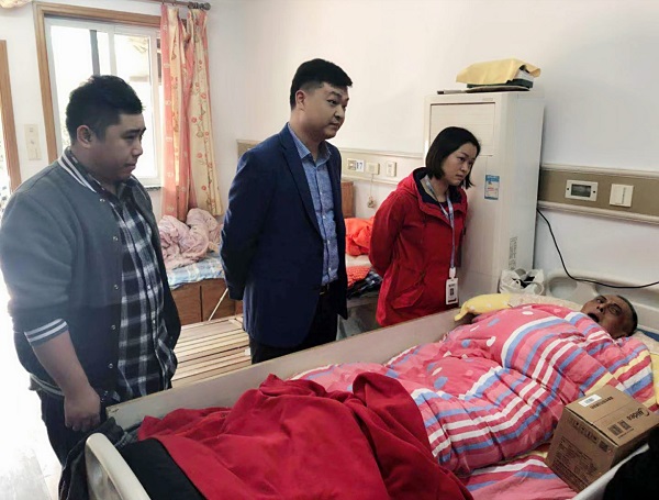 1120日,在宜川街道黨建中心和華陰居委會(huì)領(lǐng)導(dǎo)的帶領(lǐng)下,集團(tuán)青年代表們前往老人住處,送上料理機(jī)和水果的同時(shí)也帶去了集團(tuán)黨團(tuán)青年們誠(chéng)摯的問(wèn)候與祝福,鼓勵(lì)他配合治療,堅(jiān)持康復(fù)訓(xùn)練,相信不久的將來(lái)一定可以重新站起來(lái)。病床上的鐘叔叔雖然不能說(shuō)話,卻多次激動(dòng)地留下眼淚。