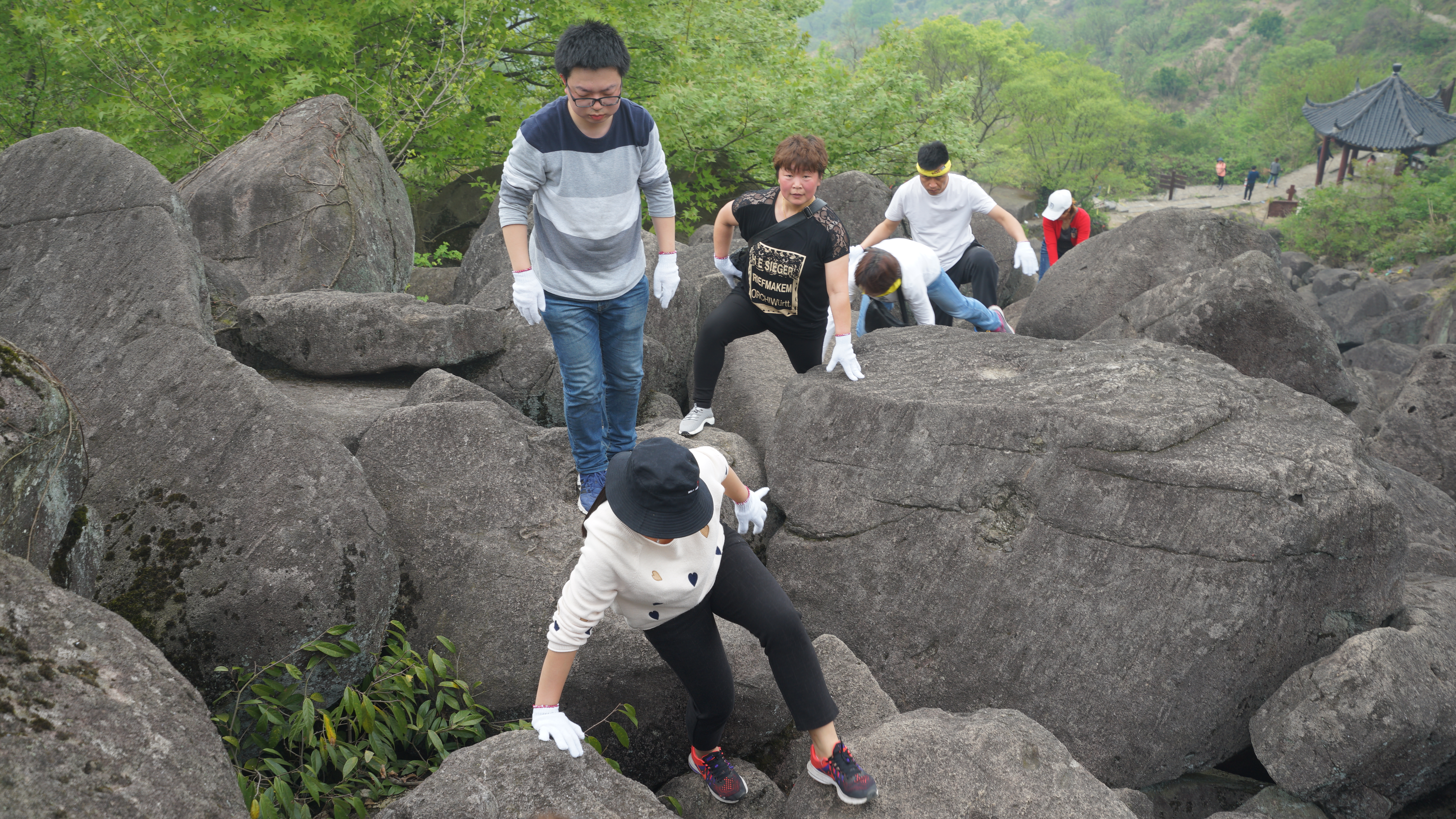 行程的最后一天,大家來到四明山支脈——覆卮山,挑戰(zhàn)攀爬冰川石浪。石堆壘積,似涌浪滔天,石浪因此得名。一步一步,小伙伴們跨過近半山,集合在冰川石浪的起點。抬頭朝終點望去,遙遙無盡,好似通天。在大自然的杰作面前,人類顯得無比渺小,但即使如此,人都有一股不服輸?shù)膭艃?。帶上防滑的布手套,小伙伴們迫不及待跨出了第一步。在攀爬過程中,大家充分展現(xiàn)不屈的團隊精神,手腳并用、相互扶持、加油鼓勁,一點一點地向上挪動,最終成功感受了一把“會當(dāng)凌絕頂,一覽眾山小”的暢快。